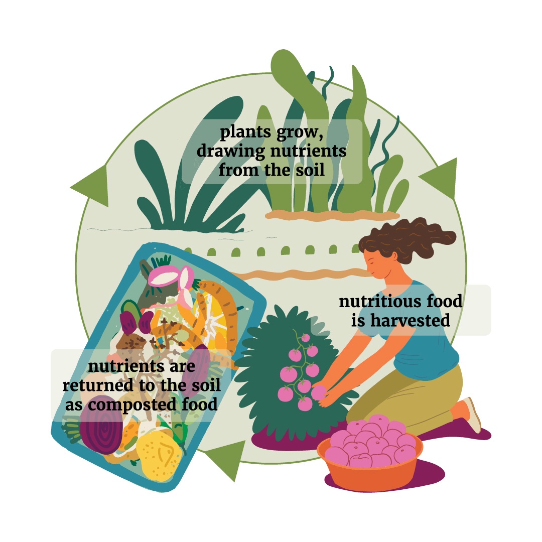 “When plants grow, they take up nutrients from the soil. They pass these nutrients to you when you eat them and it’s your job as a Climate Victory Gardener to return nutrients to the soil for future growing seasons,” says Jacobs. “Nourish your soil and your soil will nourish you.”