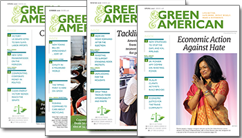 The Green American MagazineOur quarterly magazine is packed with strategies for making green purchasing, investing, and lifestyle decisions that work for you, your family, and the planet. Each issue will inspire you with articles that delve into the social and environmental issues of our time. Plus, you’ll get discounts to hundreds of green businesses. When you make your membership donation into a recurring monthly or annual donation you can choose to receive the magazine digitally via email, in the mail on 100% recycled paper, or both! |